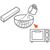 マシュマロを耐熱性のボールに入れ、水で表面の粉を洗い流します。