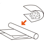 (3)をクッキングシートで挟み、上からめん棒で薄く押し伸ばします。
