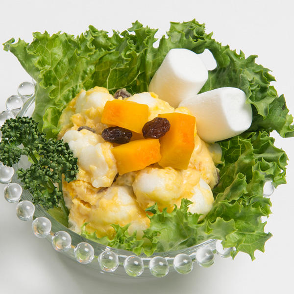 あら熱がとれた(1)にマシュマロ、マヨネーズ、ヨーグルト、レーズンを入れ全体を混ぜ合わせ、ラップをして一晩(4~5時間遺以上)冷蔵庫で冷やしお召し上がりください。